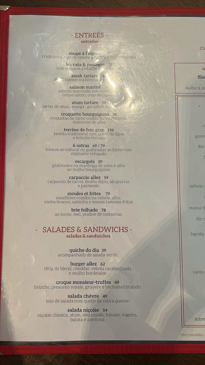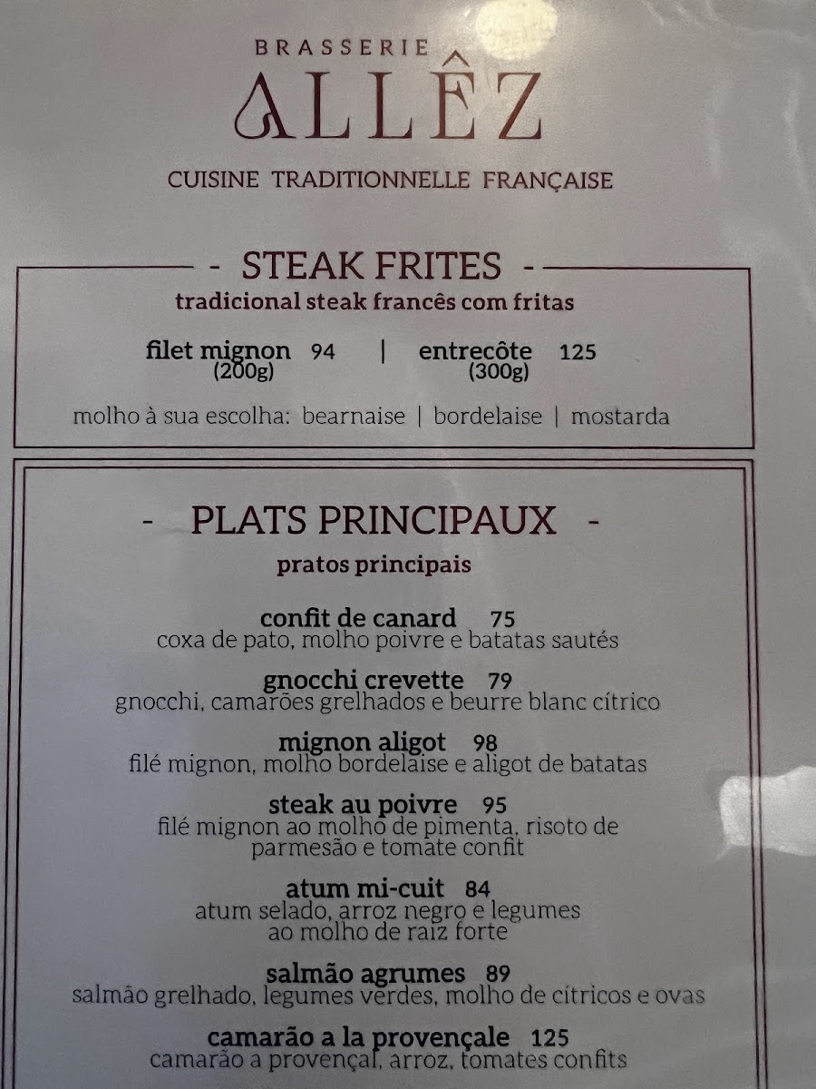 Allêz Brasserie Menu