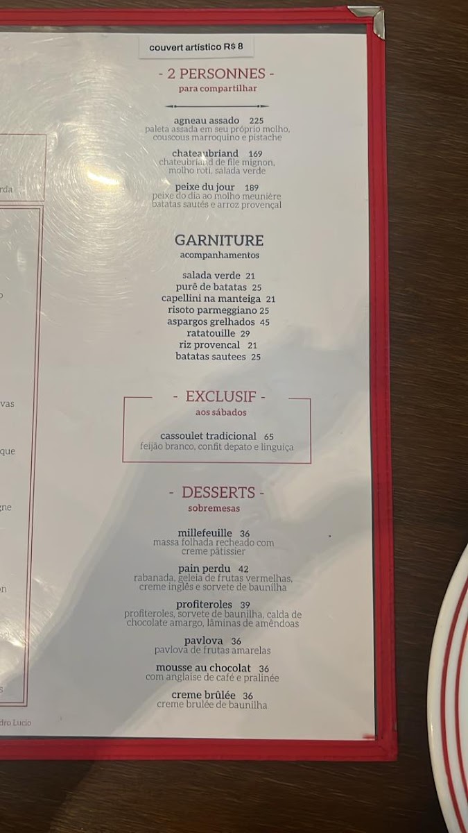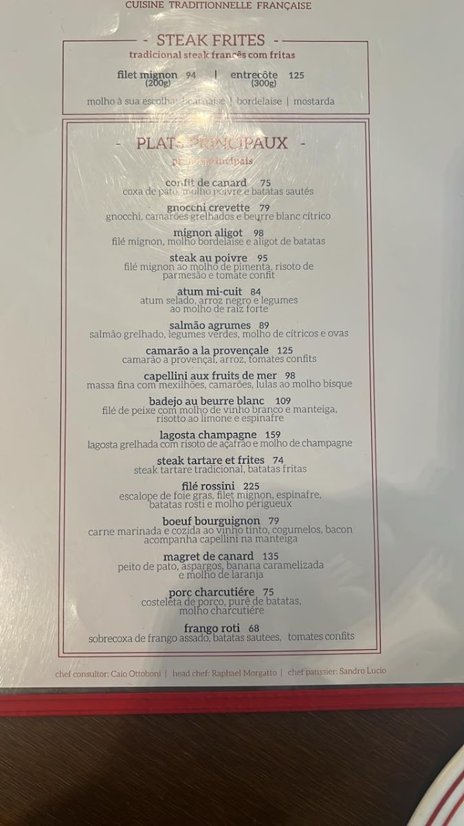 The menu features a mix of timeless French specialties and modern interpretations. You’ll find delicacies such as creme brûlée and escargot to start, with main courses like boeuf bourguignon, steak tartare, and chateaubriand that offer both comfort and depth. These dishes are ideal for those looking to enjoy a rich, flavorful experience that pairs beautifully with the restaurant’s intimate and classic setting.